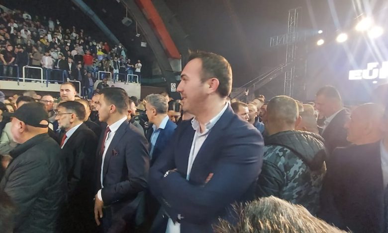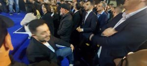 Arbër Ademi e Kreshnik Bekteshi shihen të buzëqeshur në pritje të fillimit të tubimit ku për pak momente pritet të mbahen fjalime nga liderët e partive dhe nënshkrimin e marrëveshjes së koalicionit ndërmjet BDI-së dhe ASH-së.