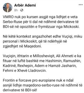 VMRO nuk po kursen asgjë nga lidhjet e veta Serbo-Ruse për ti dal në ndihmë derivateve të BDI-së në opozitën e frymëzuar nga Mickoski.