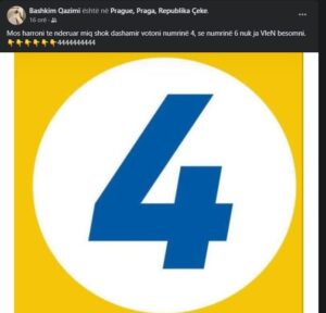 Qazimi në Facebook ka bërë thirrje që të votohet numri 4.