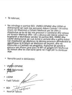 Këtë lajm e kanë demantuar nga nëndegët e BDI-së, VMRO-DPMNE-së dhe LSDM-së në Çashkë, të cilët në dokumentin e tyre lëshuar për mediat theksojnë se rasti është spekulim për të dëmtuar procesin demokratik zgjedhor.