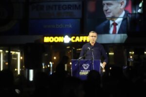 “Këtu janë forcat progresive të cilat e bënë ndryshimin e madh në vitin 2001 nëpërmjet të luftës së Ushtrisë Çlirimtare Kombëtare, Marrëveshjes së Ohrit dhe ndryshimeve Kushtetuese. 22 vjet përpjekje për tu bërë bashkë dhe për ta bërë këtë ndryshimin e duhur. Në këto 22 vite përpjekje në ndërtimin e këtij Fronti Europian, ka shumë mund, shumë sakrifica por edhe shumë pengesa. Ne jemi bë bashkë për ti bërë bashkë shqiptarët dhe të tjerët, për ta çuar këtë vend në Bashkimin Europian. Ato derivatet e Basriut, Elmiut, Zejdit, Sadullahut, dhe një derivat tjetër janë bë bashkë për ta mposhtur kujtesën e Ushtrisë Çlirimtare Kombëtare dhe të arriturat e marrëveshjes së Ohrit. Ai keni dëgjuat në ndonjë fjalim të vetëm duke folur për shkollë, për çerdhe, për spital, për rrugë, për investime kapitale, për zhvillim ekonomik, për hapje të vendeve të reja të punës asnjë të vetëm, Çdo fjalim kryekëput e kanë ta rrëzojmë Ali Ahmetin, ta rrëzojmë BDI-në, ta rrëzojmë Frontin Eurpian dhe ta marrim pushtetin për VMRO DPMNE-n. E kjo nuk bëhet vëllezër!”, theksoi Grubi.