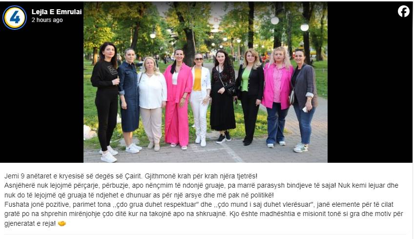 “Jemi 9 anëtaret e kryesisë së degës së Çairit. Gjithmonë krah për krah njëra tjetrës!”, kështu ka shkruar në facebook njëra prej tyre, Lejla Emrullai.