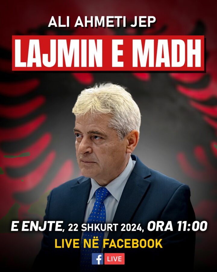 Nesër, e enjte, në ora 11:00 përmes një transmetimi të drejtpërdrejtë në Facebook, Ahmeti do ta kumtoi lajmin e madh.