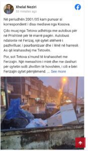 Në reagimin e tij, ai ka bërë edhe një krahasim që është bërë mes Tetovës dhe Ferizajit nga periudha 2001/05, kur i njëjti ka punuar gazetar në mediat e Kosovës.